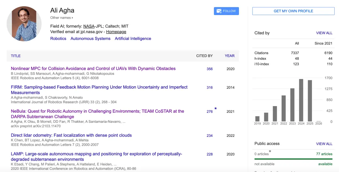 從學術背景來看,Ali Agha 也並不只是「做過 NASA 項目」的超級研究員,他還是長期親自參與機器人核心智能問題與自主算法研究的學者。根據公開的學術成果可以總結出,他在多個機器人頂級會議和期刊中都圍繞了一個主題進行過深入探討——機器人如何在缺乏完整信息的情況下,自主理解環境並持續做出可靠決策。