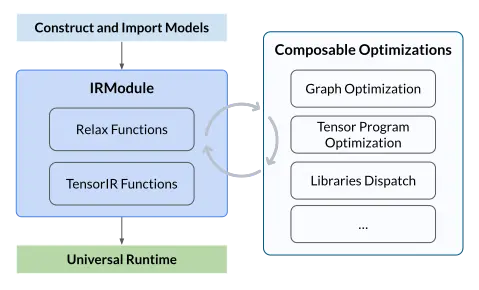 - 導入: 前端組件將模型引入到 IRModule 中,它包含了內部表示模型的函數集合。
