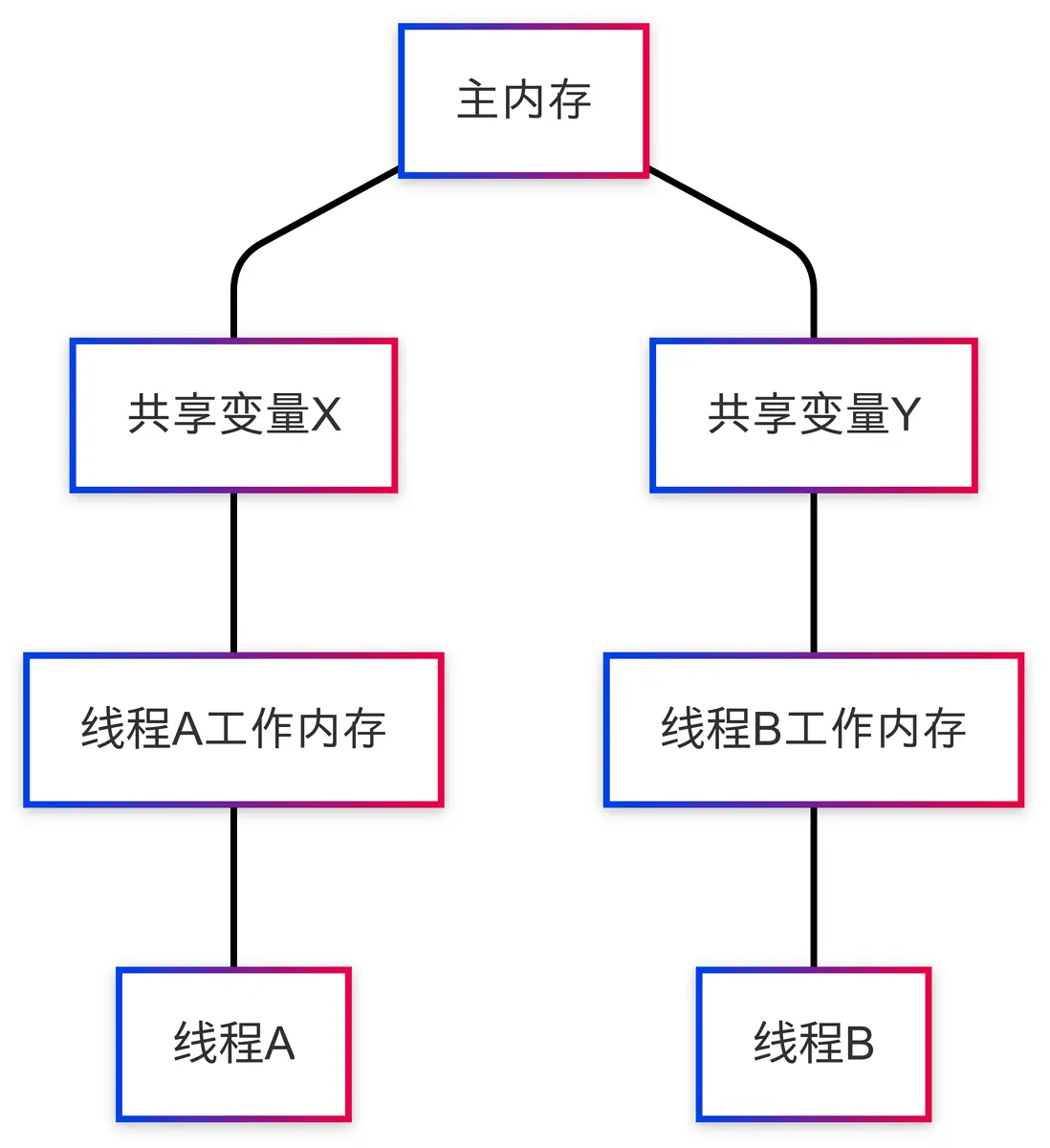 JMM 是 Java 虛擬機規範中定義的一種抽象內存模型,它定義了線程和主內存之間的抽象關係。在 JMM 中,所有變量都存儲在主內存中,每個線程都有自己的工作內存(可以理解為 CPU 緩存的抽象),線程操作變量前,必須先從主內存將變量拷貝到工作內存。