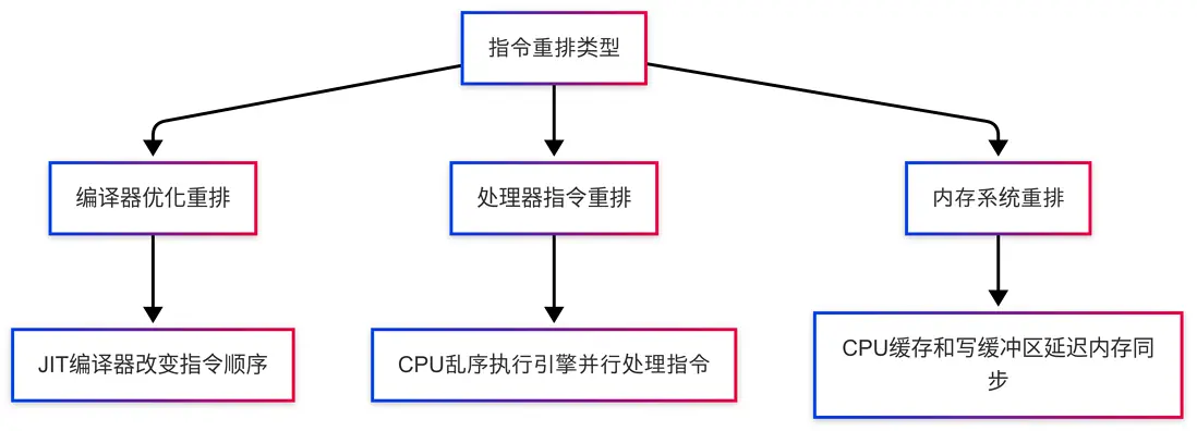 | 編譯器重排 | Java 編譯器(JIT)優化導致的指令重排 | 使用內存屏障約束重排序 | 程序順序規則 | JIT 編譯器依據 JLS 規則進行優化,插入編譯器屏障 |