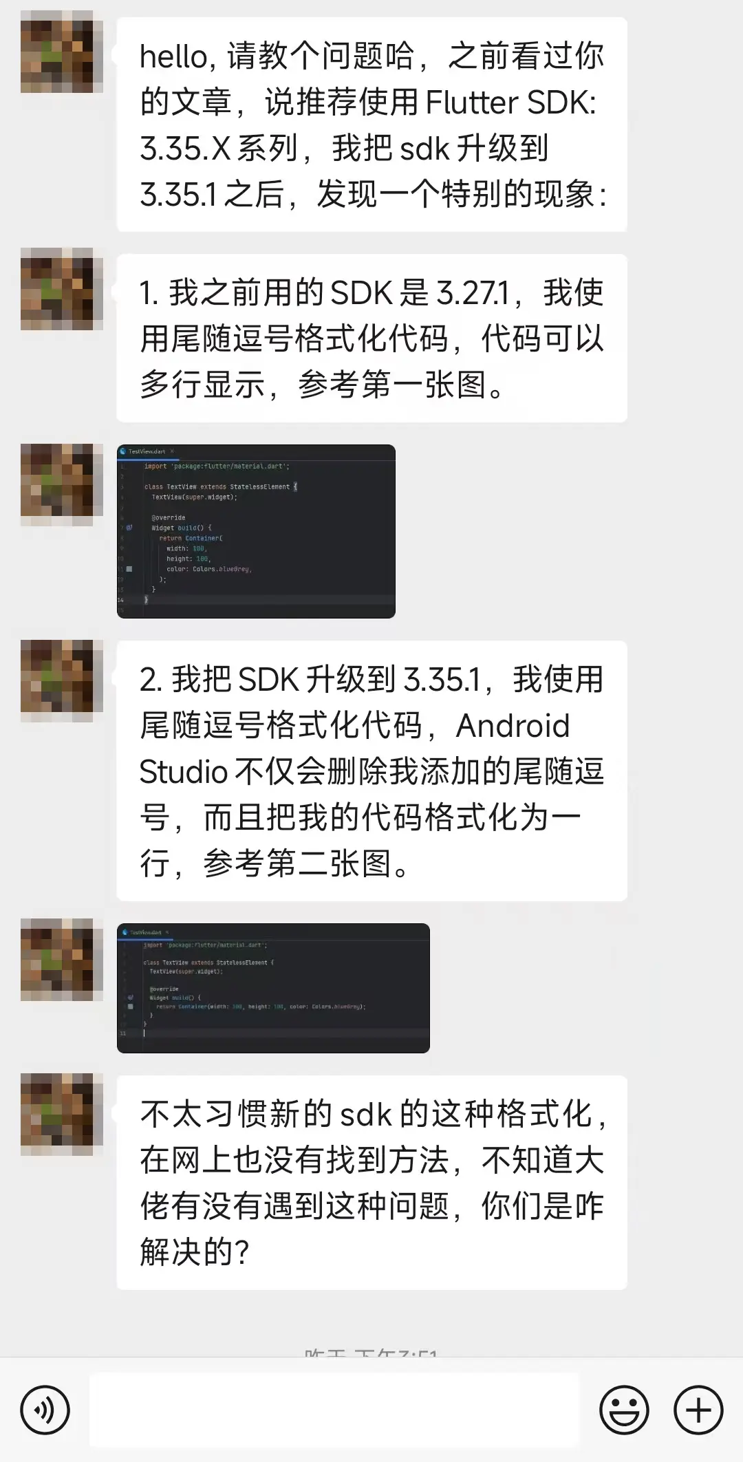 前兩天有個朋友諮詢升級到Flutter 3.35後的格式化問題。