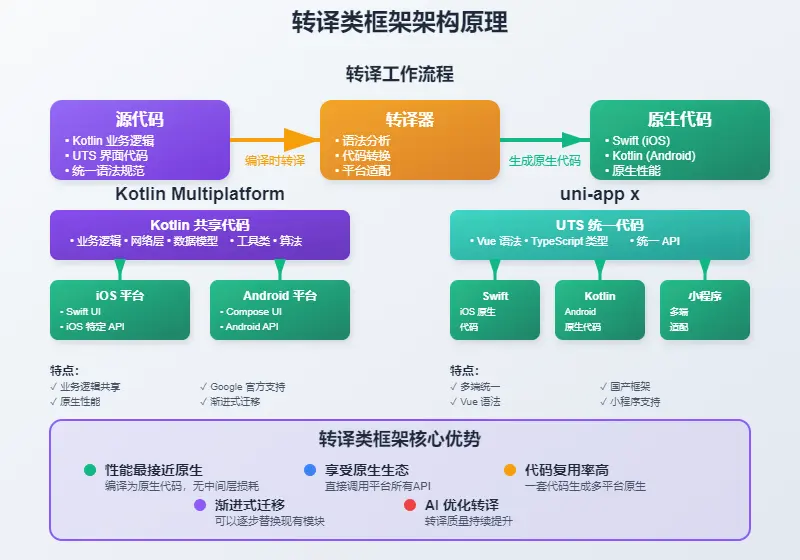 uni-app x的UTS編譯技術,直接把代碼轉成原生Kotlin和Swift。