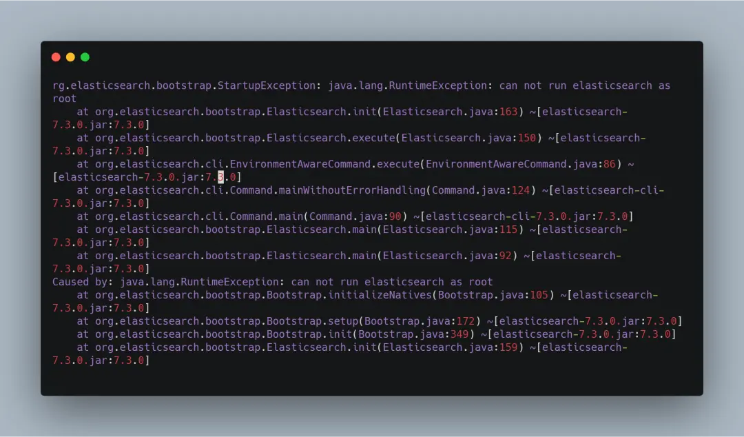 圖 5. Root 用户啓動 Elasticsearch 報錯