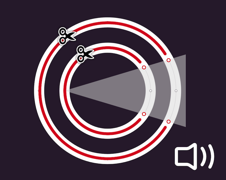 This allows us to enter vector point mode for both circles at the same time and to add points where they overlap with the triangle. Just make sure that it is left-aligned to the inner circle. The rest can be cut with the Scissors tool once you have left vector point mode. Unfortunately, you need to do that for each circle separately. You can remove the triangle after that, but show the speaker shape again. Finish the icon by putting all of its parts into a new “Volume” group.