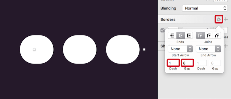 One way would be to create three circles with an offset, but we will take a slightly different approach and employ the border options instead. This has just a minor downside: The dots will not be 100% circular, but you will hardly notice that at the actual (zoomed-out) size of the icon.