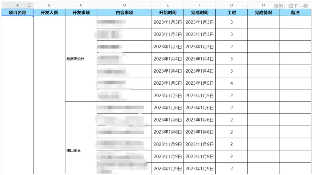 最後,會整理一份排期計劃,上面每個人的名字赫然在列,當然還有任務列表,工時,等等;