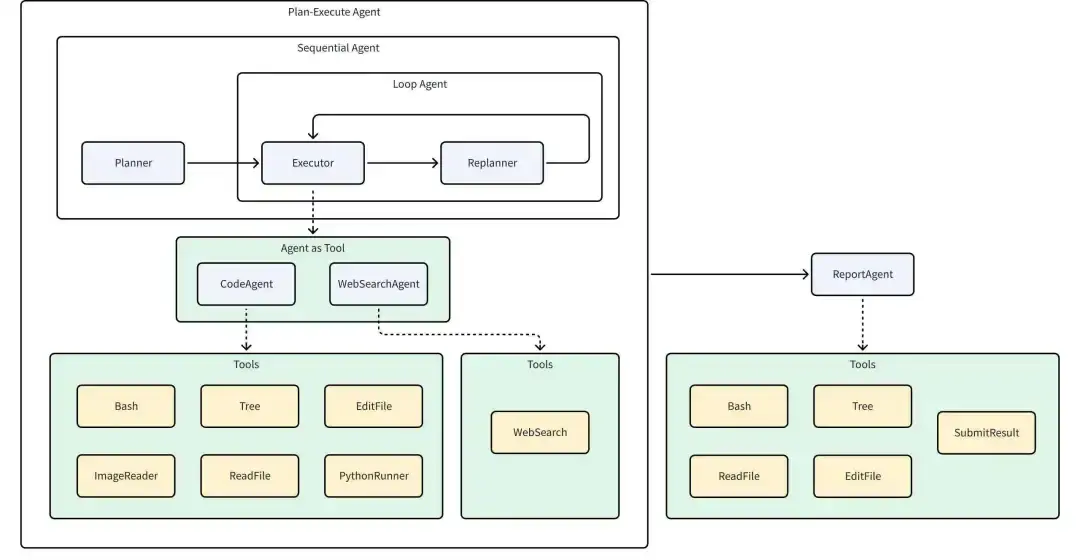 - CodeAgent:接收來自 Executor 的指令,調用多種工具(例如讀寫文件,運行 python 代碼等)完成任務