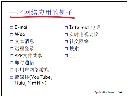 本節課是 “自頂向下” 學習計算機網絡的開篇,聚焦網絡的最高層(應用層),本章包含原理、實例、編程三個核心部分,是應用層後續內容的總覽。
