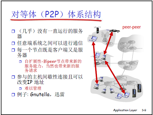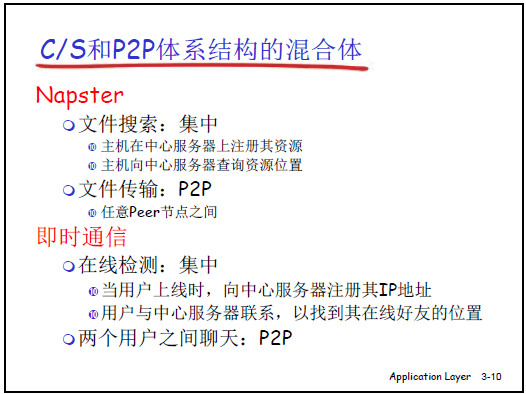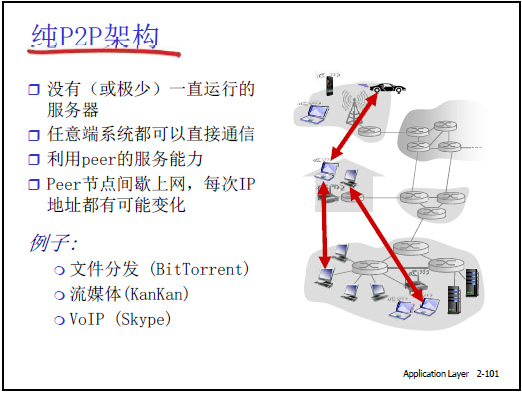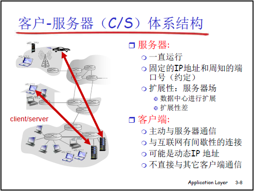- 應用的交互模式:客户 - 服務器(CS)模式、對等(P2P)模式。