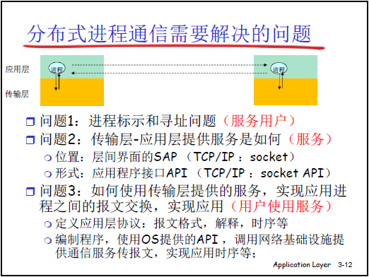 - 通過網絡基礎設施提供的服務,實現應用進程間的通信(例如 Web 的服務器軟件與瀏覽器軟件通信)