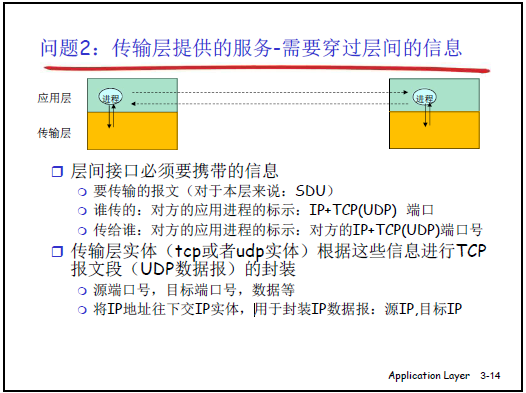 應用層向傳輸層傳遞的信息需包含三類: