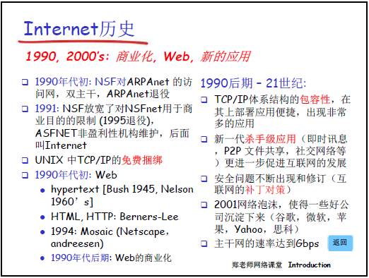 - NSFnet 放寬限制:1991 年 NSF 允許 NSFnet 用於商業目的(原僅支持學術交流),刺激企業部署商業應用。
