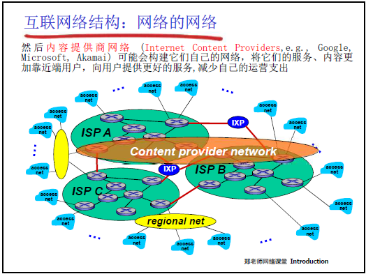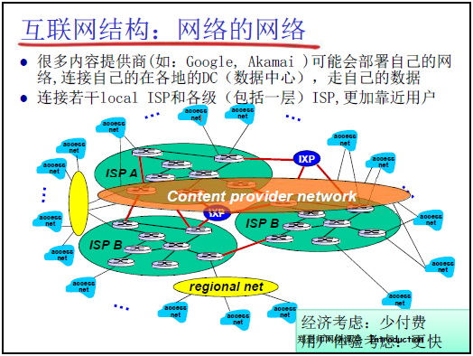 - 內容提供商自建網絡:谷歌、微軟等搭建私有網絡,將數據中心接入各級 ISP,降低運營成本,提升用户訪問速度。