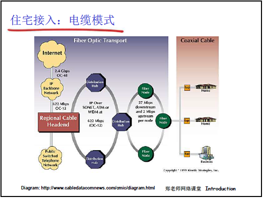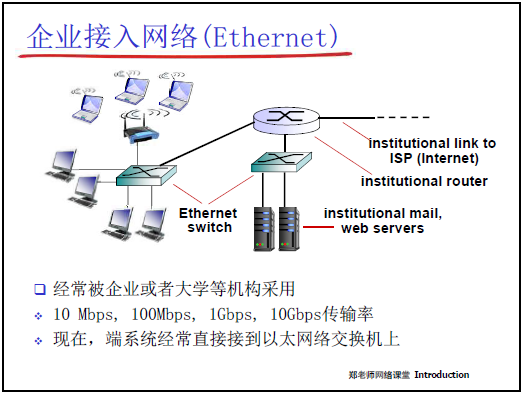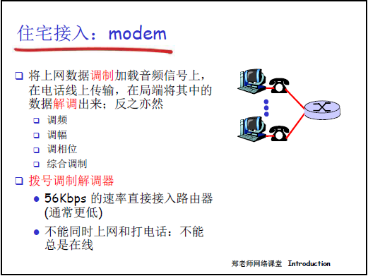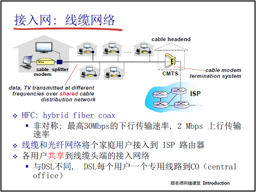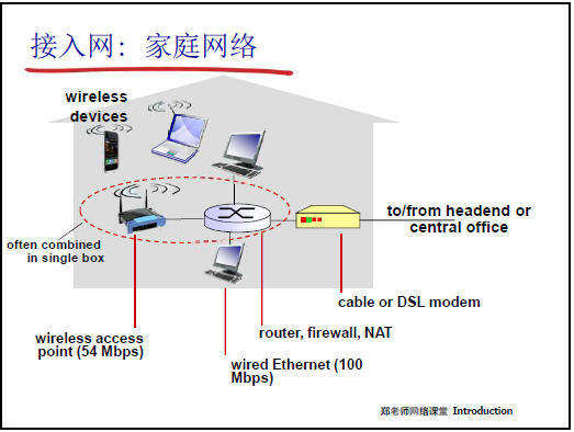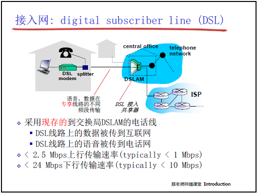 - 寬帶接入:從撥號 modem(56Kbps)→ DSL(專用線路,下行≤24Mbps)→ 光纖到户(高帶寬、低延遲)。
