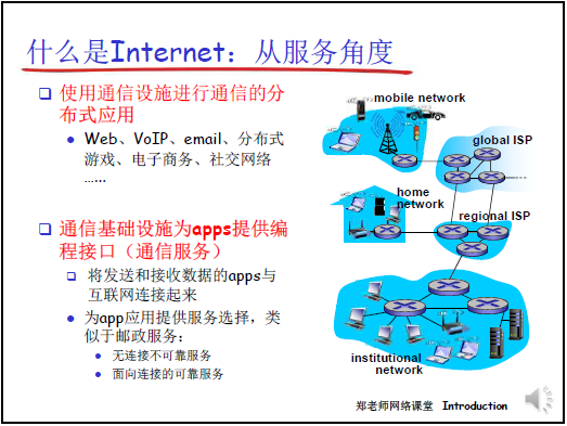 - 與多數課程 “導論性第一章” 不同,本章是整門課程的框架性核心章節,老師強調 “第一章最重要、最具框架性”,學好本章能為後續章節(如網絡邊緣、核心、協議層次等)打下 “概念級 + 技術框架級” 基礎。