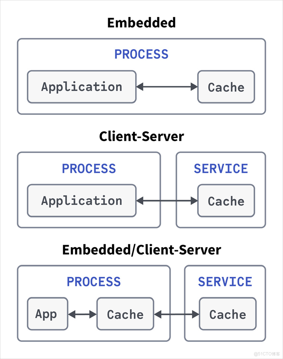 - 嵌入式 – 緩存與應用程序位於同一進程中。