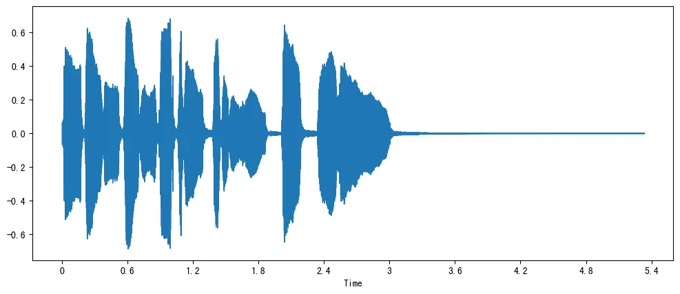 在上圖中,y 軸表示信號的幅度,x 軸表示時間,每個點對應於對該聲音進行採樣時獲取的單個樣本值。另外請注意,librosa 已將音頻的幅度映射為浮點值,並且幅度在 [-1.0, 1.0] 範圍內。