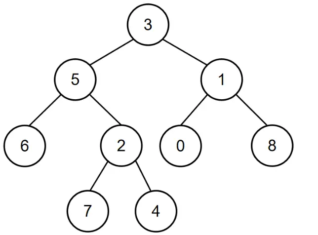 所以節點值為5和節點值為1的節點的最近公共祖先節點的節點值為3,所以對應的輸出為3。