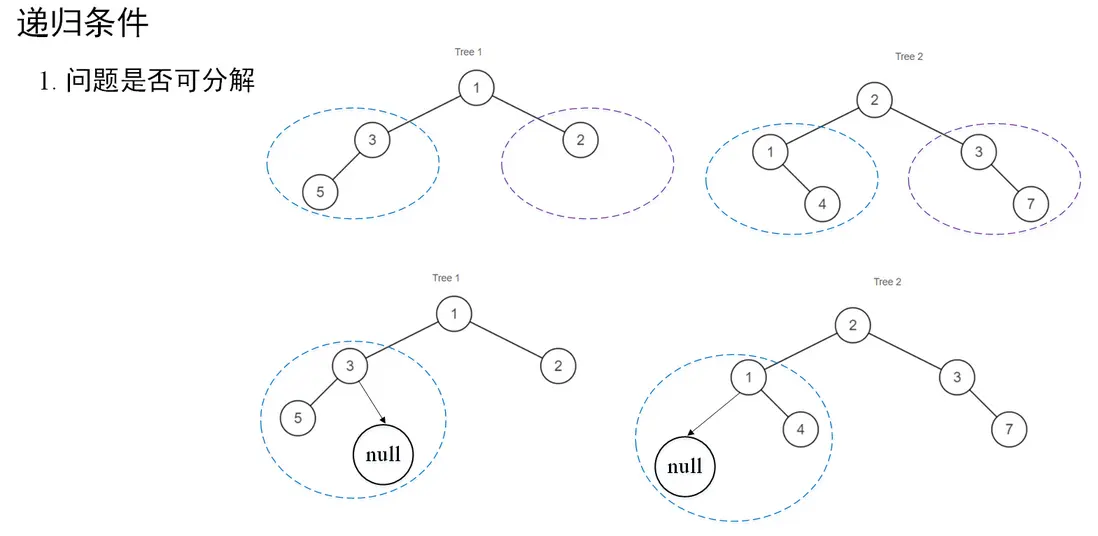 先來看看二叉樹的合併是否滿足遞歸條件: