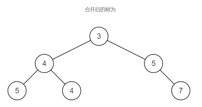 已知兩顆二叉樹,將它們合併成一顆二叉樹。合併規則是:都存在的結點,就將結點值加起來,否則空的位置就由另一個樹的結點來代替。例如:
