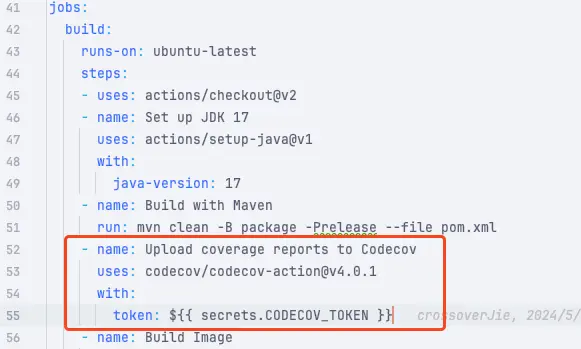 需要從 Codecov 裏將你項目的 token 添加到 repo 的 環境變量中即可。