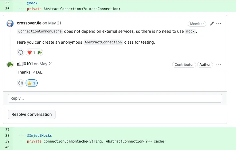 類似於這個 PR 裏的測試,只是依賴一個基礎的內存緩存組件,就沒必要 mock,但如果依賴的是 Redis 緩存組件還是需要 mock 的。