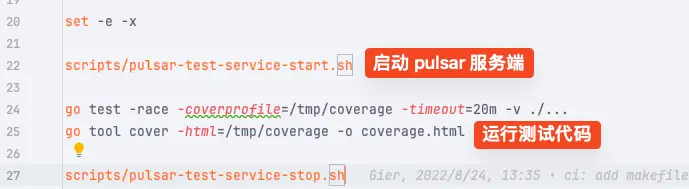 Golang 因為工具鏈沒有 Java 那麼強大,所以大部分的集成測試的功能都是通過編寫 Makefile 和 shell 腳本實現的。