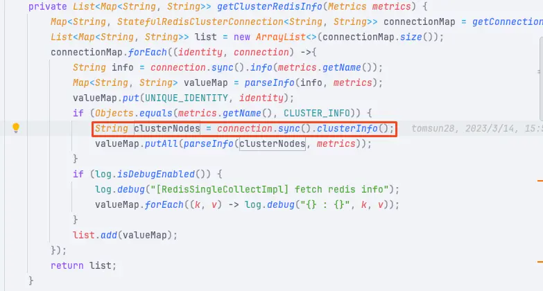 在源碼裏看到會使用 connection 的 clusterInfo() 函數返回集羣信息。