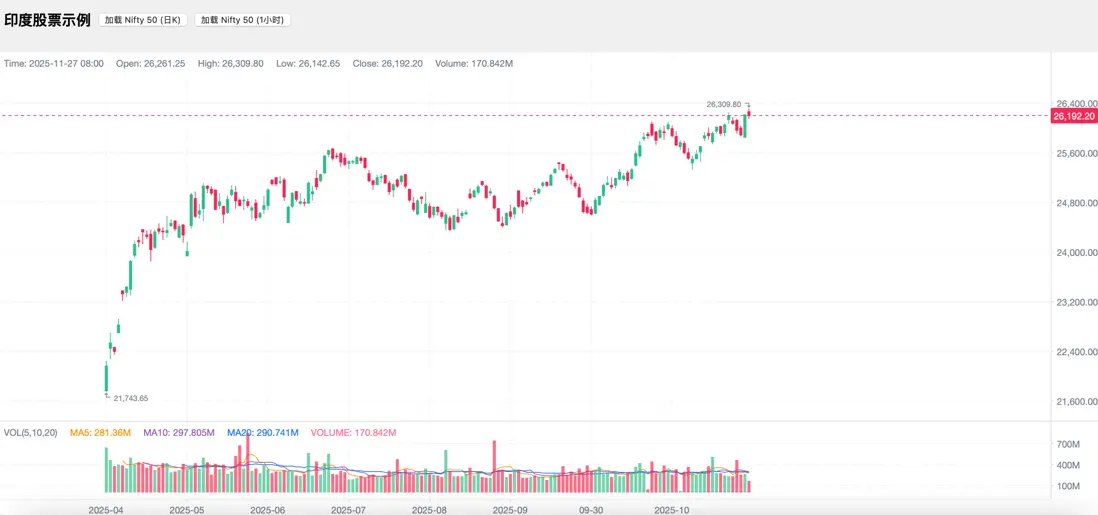 <button onclick="loadData(17940, 'P1D')">加載 Nifty 50 (日K)</button>