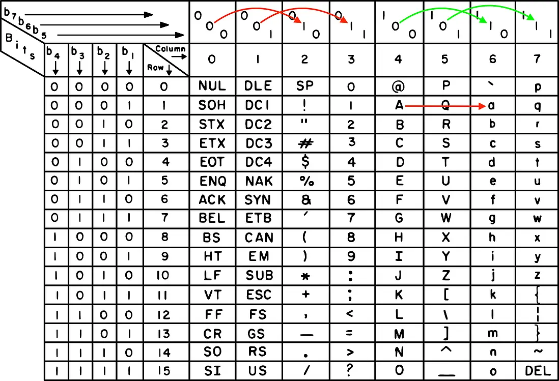 不過,從更嚴謹的角度看,這相當於把 ASCII 碼錶中第 1、2 列的字符分別映射到了第 3、4 列上,把第 5、6 列的字符分別映射到了第 7、8 列上(所以 “)” 和“*”的數量可能虛高)。