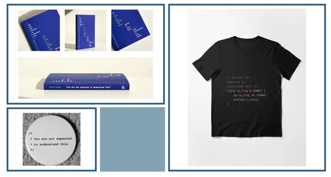 時至今日,這段代碼早已進入操作系統史的陳列櫃,但這句”You are not expected to understand this.“的餘温還在,儼然成為了 geek 圈的文化符號。你可以看到以這句話為題的圖書,印着這句話的 T 恤,印着這句話的徽章……
