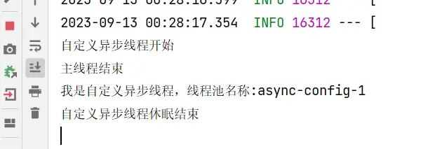 System.out.println("自定義異步線程休眠結束");