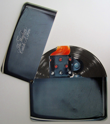 Marley’s next album, Catch A Fire, was picked up by Island Records, which made a conscious attempt to promote the artist as a rock star might be promoted, right down to the ostentatious album cover that would have been at home in a gatefold double album by Emerson, Lake & Palmer. The first 2,000 copies of Catch A Fire had a design featuring a giant zippo lighter that is flipped open to reveal the record inside: