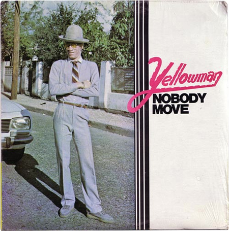 Credit Yellowman for at least maintaining a grotesque sense of humor in his postures (and, in some cases, a weirdly meticulous sense of photographic composition: check out how his belt aligns perfectly with the receding edge of the sidewalk in the cover above). As the ’70s rolled along, the appropriation of rap culture became depressingly void of self-awareness: