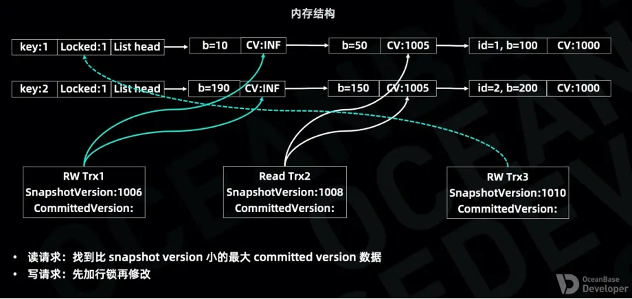 OceanBase 基於MVCC和行上的互斥鎖,實現了併發控制,主要特點如下: