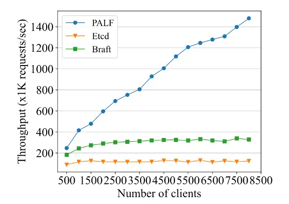 圖8 OceanBase PALF、Etcd、Braft三款系統日誌持久化極限能力對比