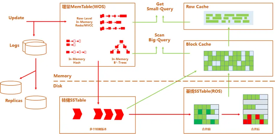 (5)Fuse Row Cache:跟row cache的差異在於,fuse row cache緩存的是當前系統中動、靜態數據merge之後的值,對於高頻的數據訪問,可以直接訪問fuse row cache;