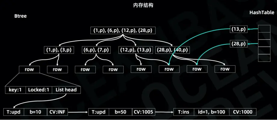 • OceanBase 行的元數據上保存了鎖信息,同樣也不需要額外的鎖管理器。