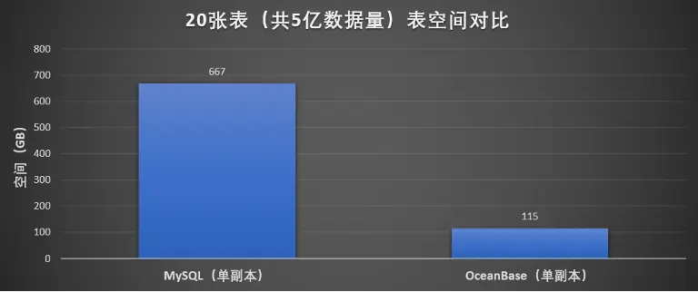 圖7 OceanBase與MySQL表空間與集羣總存儲空間測試數據