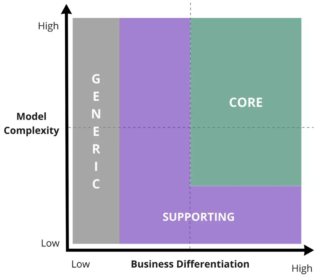 - 核心(Core) Domain: 也就是我們常説的業務核心,當然如果是技術產品,就是技術核心,這個也就是你最要關注的。