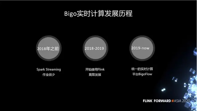 今天主要跟大家分享 Bigo 實時計算平台的建設歷程,我們在建設過程中解決的一些問題,以及所做的一些優化和改進。首先進入第一個部分,Bigo 實時計算平台的發展歷程。