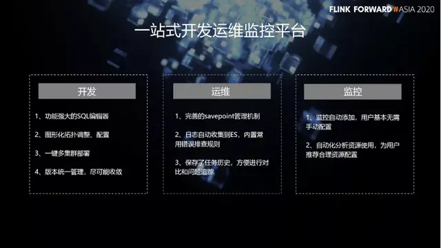 接下來我們看一下 Bigo 計算平台的特色,以及我們做的改進。作為一個發展中的公司,我們平台建設的重點還是儘可能的讓業務人員易於使用。從而促進業務的發展,擴大規模。我們希望建設一個一站式的開發、運維、監控平台。