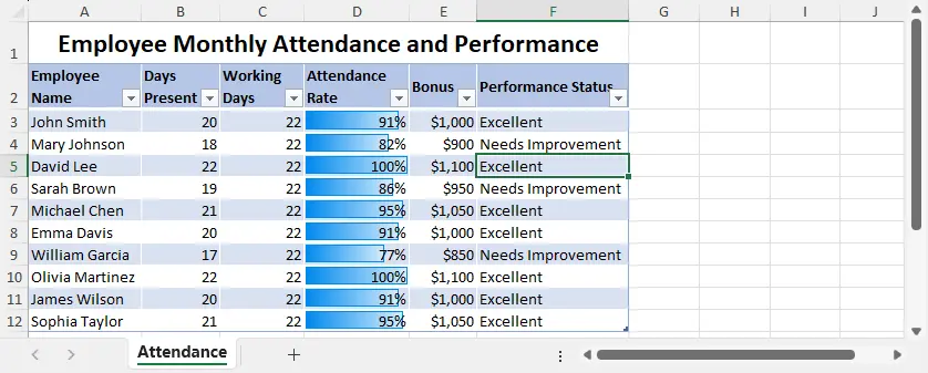 - 表格樣式自動包括表頭加粗、邊框和交替行色。