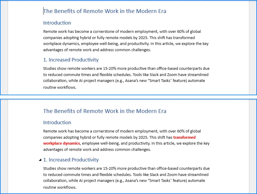 textSelections = doc.FindAllString('transformed workplace dynamics', False, True)