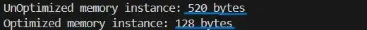 在上述示例中,未經優化的實例佔用了520字節的內存空間。相比其他編程語言,這種實現方式在內存效率方面存在明顯劣勢。