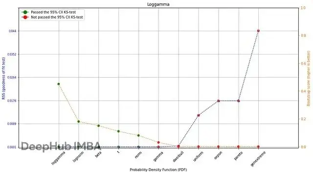 綜合擬合優度、bootstrap、可視化、PDF特性,loggamma分佈在這個場景下是最佳選擇。需要的話可以指定loggamma重新擬合: