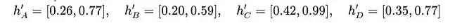 設定變換後的特徵維度F′=2,注意力向量a為(實際中這個向量也是訓練學習得到的):