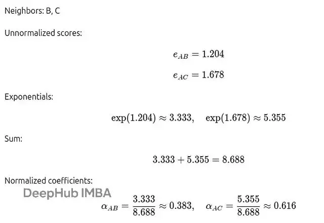 Softmax確保每個節點對其所有鄰居的注意力係數加起來等於1。
