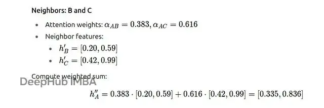 結果顯示節點A給B分配38.3%的注意力,給C分配61.6%的注意力。