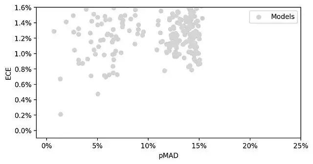 理想的模型應該是低ECE、高pMAD,也就是圖的右下角區域。